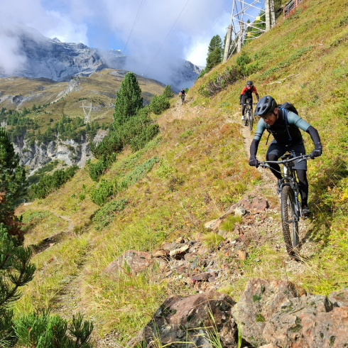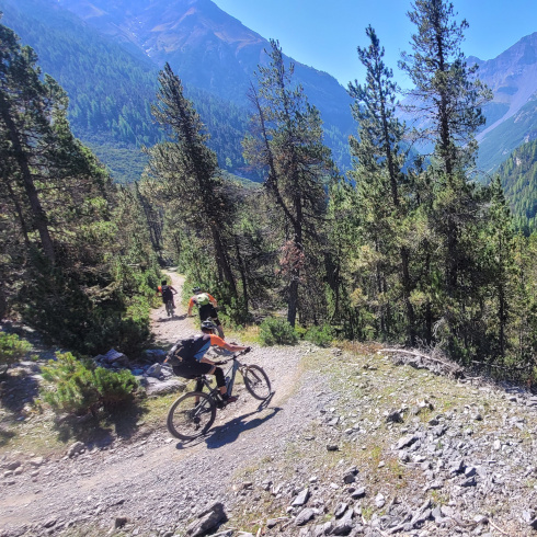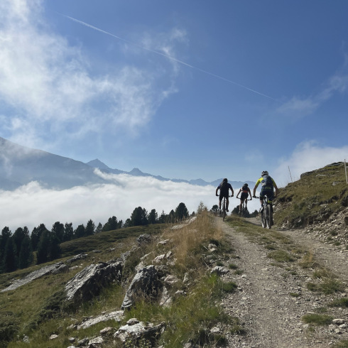 Vanochtend hoef je je tas niet in te pakken want we maken een geweldige rondrit vanuit Grosio. We klimmen in het afgelegen dal van Malghera en drinken koffie in de gelijknamige Rifugio. Over de flanken van het Val Grosina klimmen we over heerlijke singletrails door Larixbossen en over almen totdat we boven de boomgrens zijn. We sluiten de etappe af met een megalange singletrailafdaling naar Grosio.