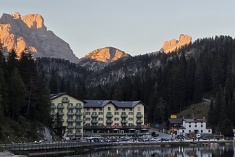 Dit is een geweldige Dolomieteneetappe. Eerst de befaamde overgang langs de Faneshütte naar Cortina d'Ampezzo en dan verder via de Passo Tre Croci naar het meer van Misurina aan de voet van de Drei Zinnen. Voor de groene en wellicht ook blauwe route gebruiken we de Faloria lift vanuit Cortina. We overnachten in het 4 sterren Grand Hotel de Misurina, één van de traditionele, nostalgische hotels direct aan het gelijknamige Lago.