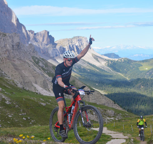 Nadat de tassen weer zijn ingepakt starten we weer met een afdaling. Ook nu weer een hele leuke bikeparktrail naar de Passo Campolongo en verder via een stuiterpad naar Arabba. Vanaf daar weer klimmen (onverhard natuurlijk) naar de beroemde Passo Pordoi. De singletrailafdaling naar Canazei is geweldig. De klim naar de Sellapass doen we met de lift, zodat we daarna weer extra lang kunnen genieten van de geniale downhills. We worden weer hartelijk ontvangen in het hotel in Wolkenstein. Vanavond mag iedereen zelf ergens in het dorp een pizza halen.