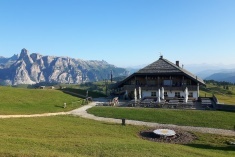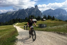 Na de indelingsklim stijgen we door op bospaden. Opeens opent zich het bos en zijn we op de grootste Alm van Europa: de Seiseralm. Op deze alm maken we en grote ronde over schotterpaden en singletrails. De Dolomietentoppen van Sass Long en Sass Platt en de Schlern vormen het prachtige decor.