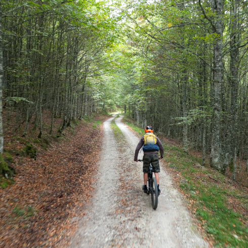 Vandaag rijd je door de uitgestrekte beukenbossen van het bestbewaarde woud van Irati en langs het sprookjesachtige stuwmeer Irabia. Het 2e deel van de etappe gaat door Frans Baskenland. Het landschap is hier meer open en op de rode bergen grazen grote kuddes schapen. Over een hele steile klim fietsen we weer terug Navarra in, waar we weer worden beloond met een toptrail.