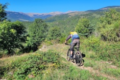 We verlaten Aragon en rijden de provincie Navarra in, waar nog minder mensen wonen. Het hoogtepunt van deze etappe is de Sierra de Atuzkarratz, waar we lang over een bergkam rijden, met geweldige uitzichten naar de Pyreneeën-hoofdkam in het noorden. Ook vandaag aan het einde weer fijne singletrailafdalingen.