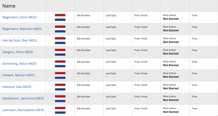 Op de website van de Vasaloppet vind je een overzicht van alle Nederlanders en Belgen.